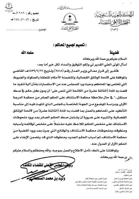قرارات وتعاميم المجلس الأعلى للقضاء.
